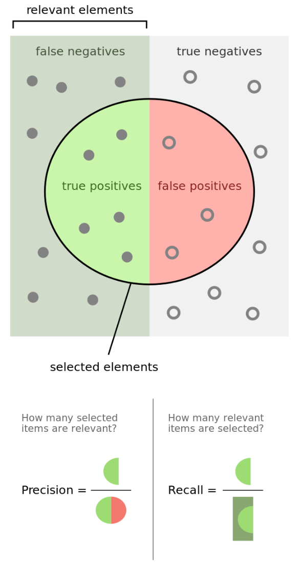 Precision = 真正例/预测为正例的样本 = TP / (TP + FP), 实际值为正例的样本占预测值为正例的比例